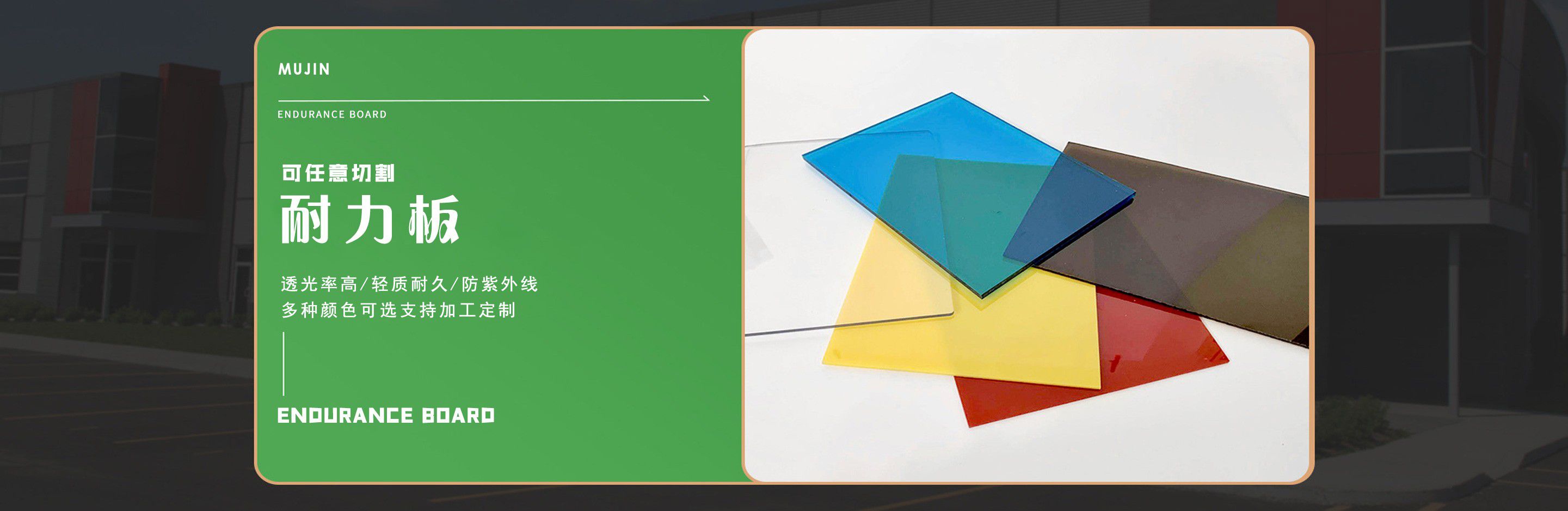 聊城市沐金塑膠有限公司注冊資金2180萬元,占地20000余平方,擁有自建廠房15000平方,員工100余名。10余年來,公司主營耐力板,鎖扣耐力板,耐力板深加工,無動力通風器,組合雨搭,PVC硬脂板,耐力板廠家等板材的發(fā)展戰(zhàn)略,逐漸成長為綜合性企業(yè)。 公司擁有多條板材共擠生產(chǎn)線,采用世界知名品牌進口原材料和先進工藝,依據(jù)完善的ISO9001質(zhì)量管理體系和ISO14001環(huán)境管理體系,為產(chǎn)品的卓越品質(zhì)提供了強有力的保證。憑借過硬的創(chuàng)新能力和堅實的硬件基礎(chǔ),贏創(chuàng)已成為國內(nèi)領(lǐng)先的熱塑性板材生產(chǎn)商,產(chǎn)品被廣泛應用于建筑業(yè)、農(nóng)業(yè)、工業(yè)、廣告業(yè)、安防行業(yè)及DIY領(lǐng)域。 公司始終致力于通過提供最優(yōu)的板材應用解決方案,為客戶創(chuàng)造最高的價值;堅守創(chuàng)新、質(zhì)量、靈活、服務(wù)和速度的核心價值觀;堅持“完美的產(chǎn)品需要完美服務(wù)的支持”的經(jīng)營理念,努力實現(xiàn)成為世界領(lǐng)先的板材與解決方案供應商的夢想。 在未來,公司將立足客戶需求,不斷改變和完善現(xiàn)有產(chǎn)品,拓展產(chǎn)品線和充分開發(fā)板材的應用領(lǐng)域,為客戶創(chuàng)造全方位的價值。同時更好地實現(xiàn)員工的價值,實現(xiàn)公司團隊的價值。我們將與您一起創(chuàng)贏未來! 企業(yè)使命:成為世界領(lǐng)先的板材與解決方案供應商。 公司愿景:通過提供最優(yōu)的板材應用解決方案,為客戶創(chuàng)造最高的價值。 核心價值觀:質(zhì)量...